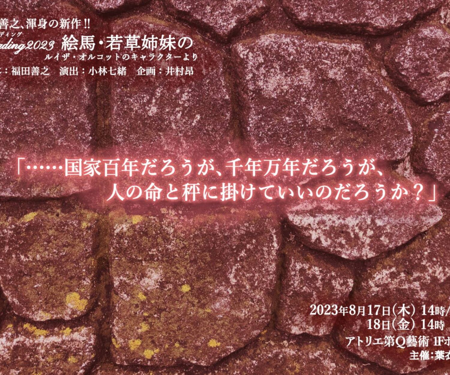 Past 15 8月 2023 「絵馬・若草姉妹の」福田善之リーディング 福田善之先生の新作のリーディングです。音楽を担当いたしました。 リーディングといっても、歌ありムーブメントありの公演です。 演出小林七緒さんを中心に、作品が作り上げられております。 多彩なキャストで福田先生の世界を堪能していただけたらと思います。 2023年8月17日 14時/19時 18日17時 アトリエ第Q藝術1Fホール 主催:葉衣企画 hidaka