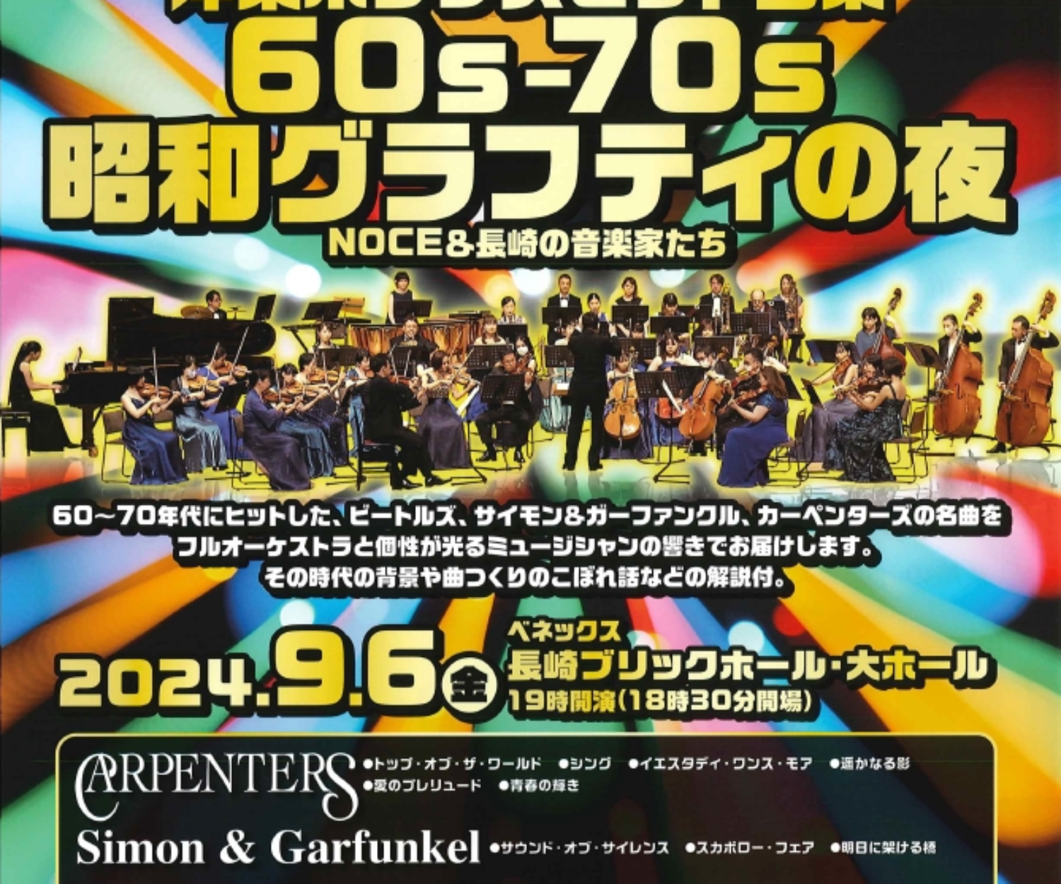 Past 09 9月 2024 長崎OMURA室内合奏団演奏会 長崎のプロオーケストラ、NOCEに指揮、編曲として参加いたしました。 ビートルズ、カーペンターズ、サイモン&ガーファンクル、20曲ほどを 全曲アレンジいたしました。 市原さんのお話と共に、フルオーケストラサウンドでの迫力のある音楽を 楽しんでください! 2024年9月6日 19時 長崎ブリックホール・大ホールにて hidaka