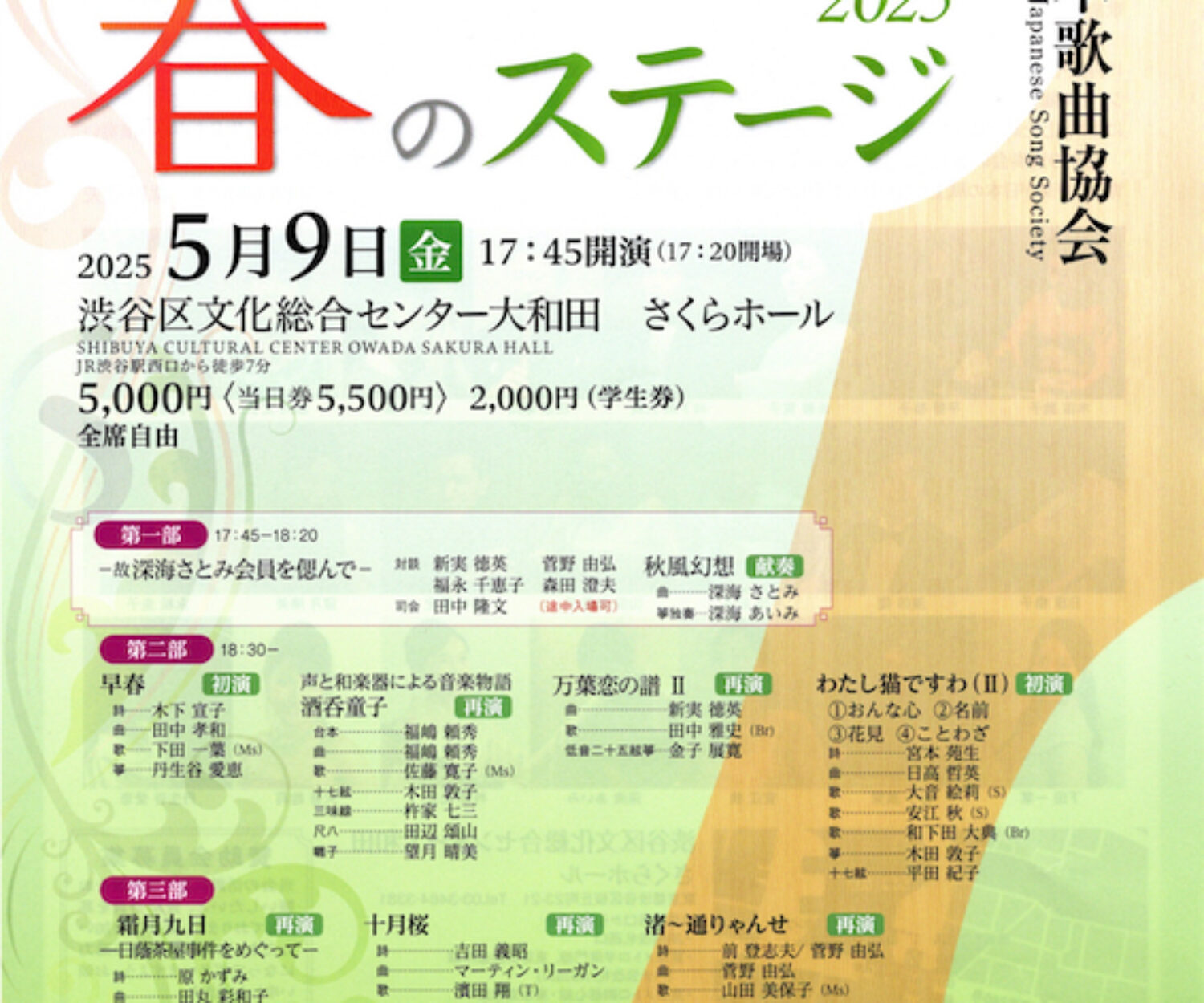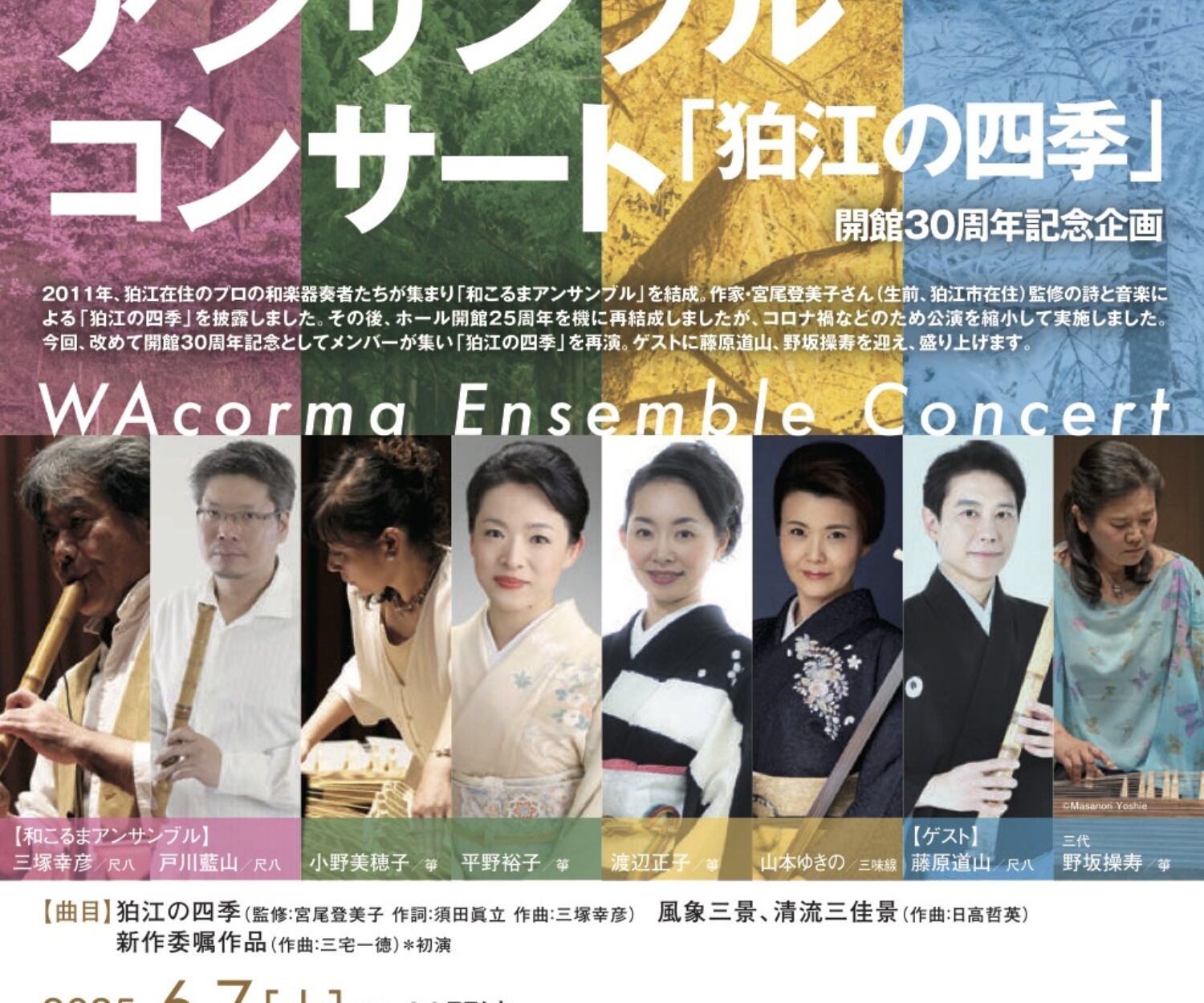 坂崎守寛(唄)、本條秀慈郎(三味線)小濱明人(尺八)、小湊昭尚(篠笛)、美鵬直三朗(鳴物)、稲庭淳、山川尚美(はやし詞)、尾池亜美(ヴァイオリン)、阿部哲(ヴィオラ)、加藤文枝(チェロ)、大瀧拓哉(ピアノ)