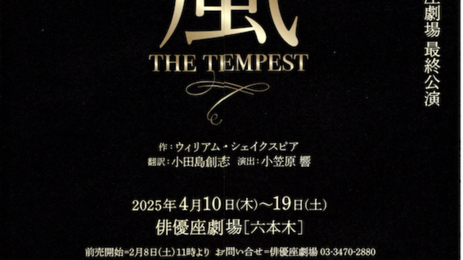22 3月 2025 hidaka Past Permalink 嵐 The Tempest hidaka 2025年3月22日 演劇の音楽を担当いたしました。 俳優座劇場最終公演 シェイクスピア「嵐」THE TEMPEST 演出: 小笠原響 俳優座劇場4/10-19 この劇場での最後の公演です。 シェイクスピアの大作に全力で挑もうと思います!